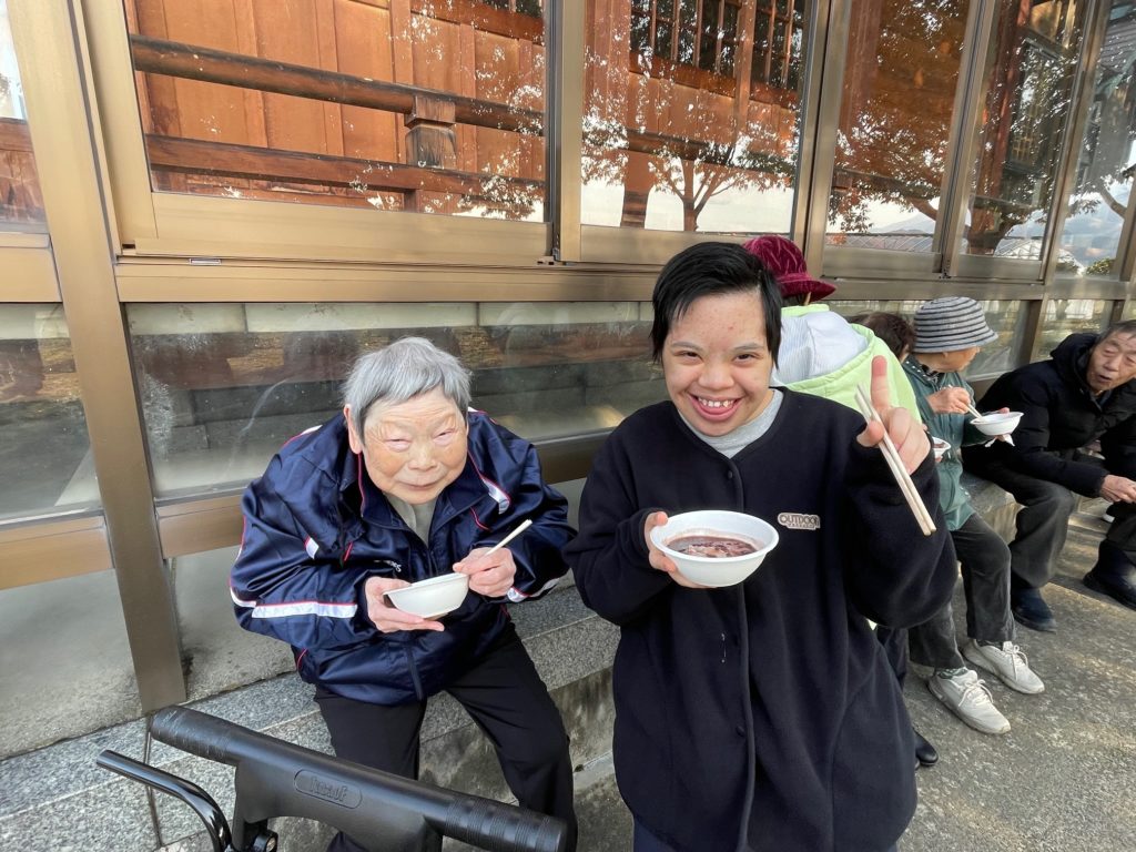 祈祷が終わった後は、浦山新地区の皆さんと一緒に、温かいぜんざいを頂きました。